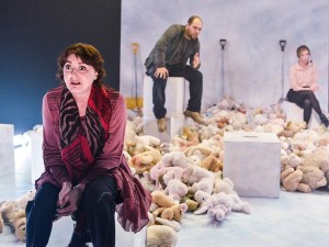 "The beautifully minimalist set of Billy (Days of Howling) hints at a nursery. There are white blocks for furniture, a hanging-mirror ceiling and hundreds of stuffed toys which get shovelled back and forth between scenes."--Pat Donnelly, Montreal Gazette 10.09.2014