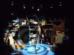 "Perhaps most notable is the elaborate set designed by Lyne Paquette. Despite the small stage size, Paquette uses two towering metal shelving units to make the entire set seem much larger while replicating the feel of a messy condo. books form strange stacks and moving boxes crowd the floor while above the characters the detrius of modern life line the shelves alongside funky lamps. ...Coma Unplugged is a contemporary jewel."-Pat Case, Concordian, 26 October 2011.