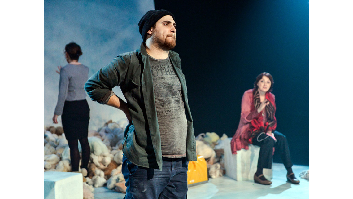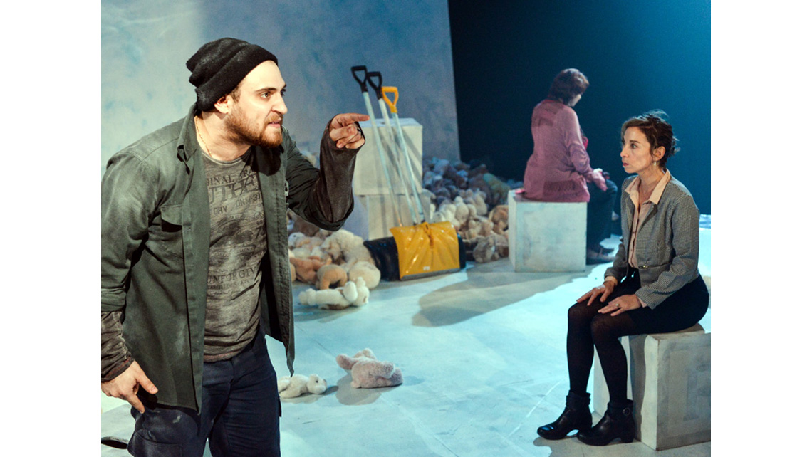 "The beautifully minimalist set of Billy (Days of Howling) hints at a nursery. There are white blocks for furniture, a hanging-mirror ceiling and hundreds of stuffed toys which get shovelled back and forth between scenes."
